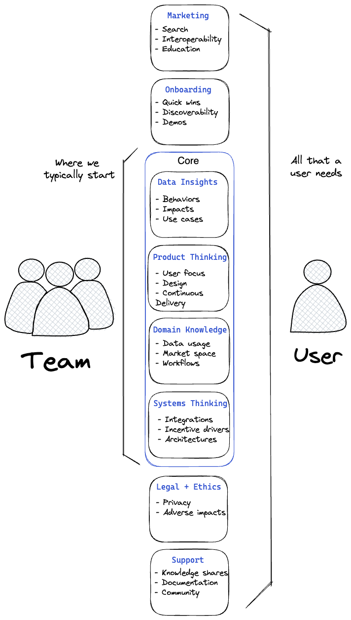 Finally, data products require a different kind of team than traditional software products. You need data engineers, data scientists, and analysts who can work together to build, analyze, and communicate insights from the data. This requires a strong focus on collaboration and cross-functional teamwork.